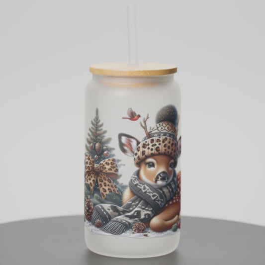 Winter Deer - Frosted Can Glass